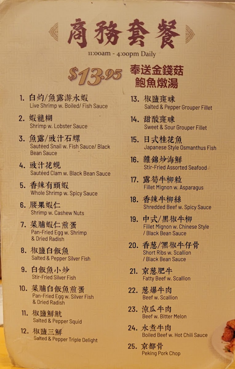 Welcome to East Buffet, a culinary gem nestled in Flushing, NY, specializing in authentic Chinese cuisine. This restaurant showcases a delightful array of dishes that pay homage to Cantonese flavors. The menu is a vibrant tapestry of options, from the Sweet & Sour Chicken to the fragrant Lobster W. Ginger & Scallion—both priced at an enticing $9.99. The offerings include mouthwatering casseroles like Grouper Fillet W. Tofu and Beef Stew W. Bean Curd Skin, highlighting the kitchen's dedication to fresh, quality ingredients.